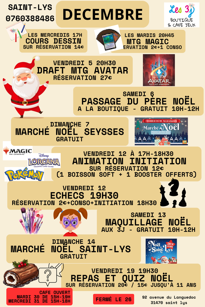 Une fois par mois, venez à la rencontre de Flavie gérante des 3 J et passionnée, lors d'animations pour venir tester des jeux de société qui correspondront à vos souhaits.